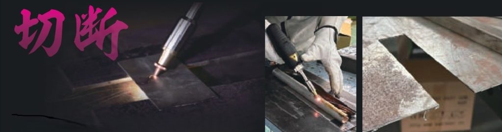 ノズルを変えて、照射幅(スイング幅)を絞れば、切断が可能になる。プラズマ切断と比べて切断線が非常に細い精密切断(最大6mm程度)を実現した。