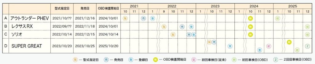 ■ 型式指定日・発売日・OBD検査開始日の関係性