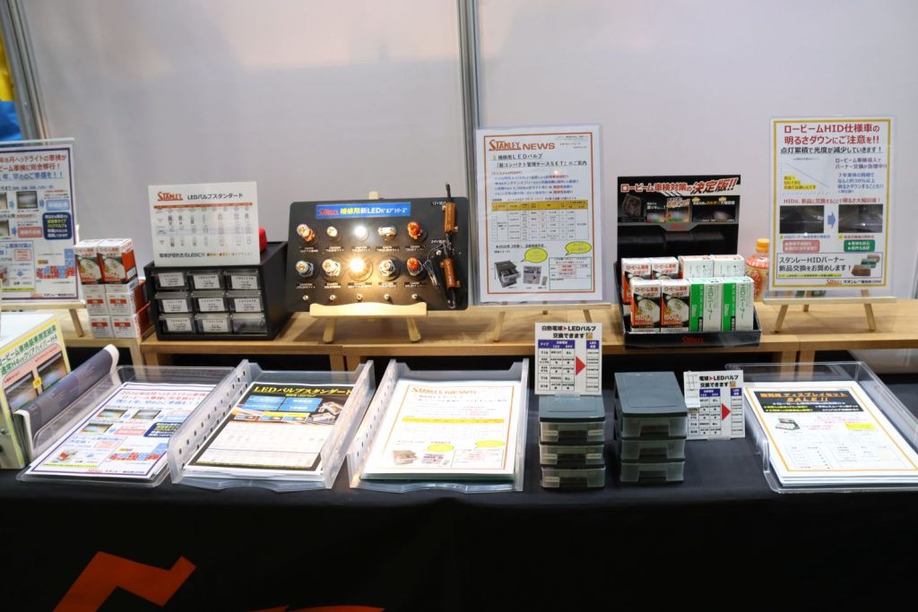 2026年8月、自動車車検におけるヘッドランプの検査方法が、ロービームでの測定に完全移行することを受けて、対応品であるロービーム車検対応ハイパーハロゲン電球・LEDバルブ製品・マイクロ2ヒューズなどを展示した