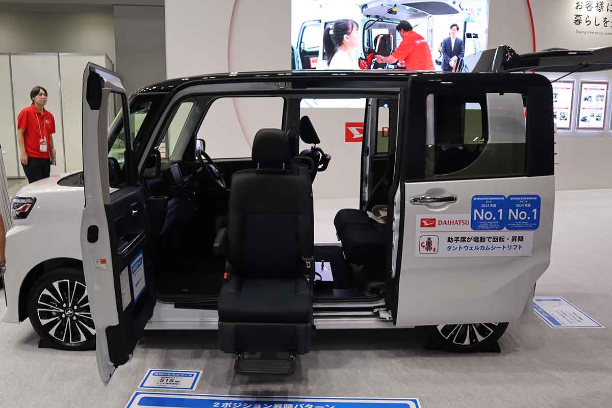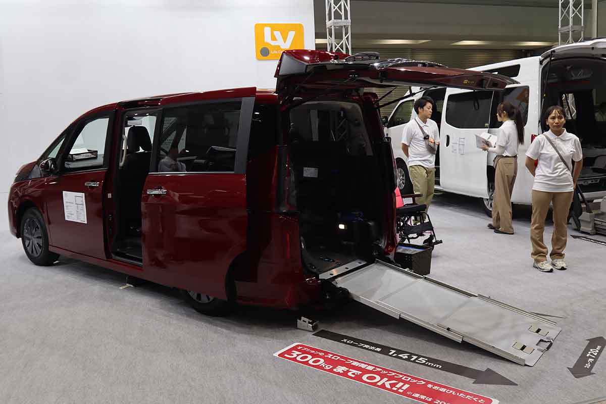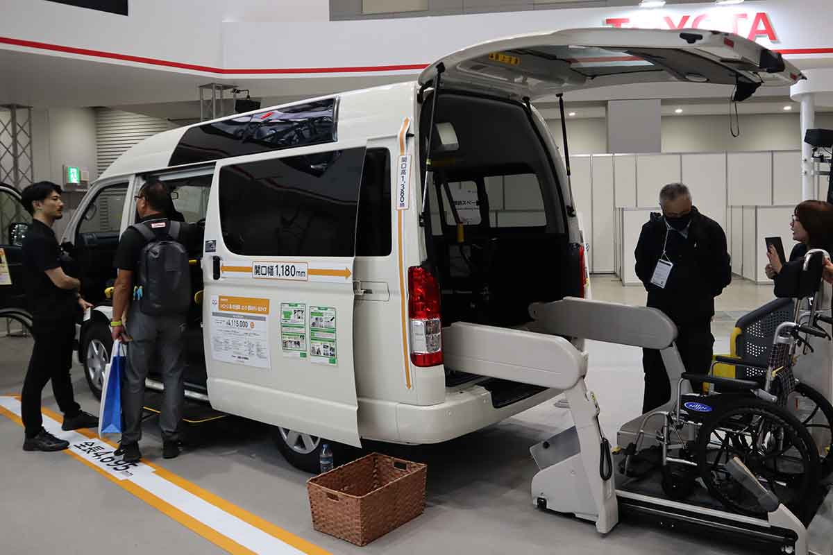 “すべての「行きたい」を叶えたい”を合言葉に、ハイエースやノア、シエンタなど現行車の車いす仕様車を展示。ハイエースはワンタッチで車いすを固定できて乗り入れがスムーズに