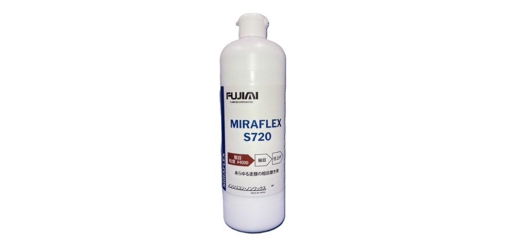 「MIRAFLEX S510」は、粗目磨きから仕上げまでワイドレンジに対応する細目コンパウンド。独自の砥粒形状により、傷のない効率的な研磨を実現。ホワイトやシルバーなど淡色車であれば、S510で仕上げまで行うことが可能で、車検時のプラスワンメニューとしてのコーティング施工に適する。