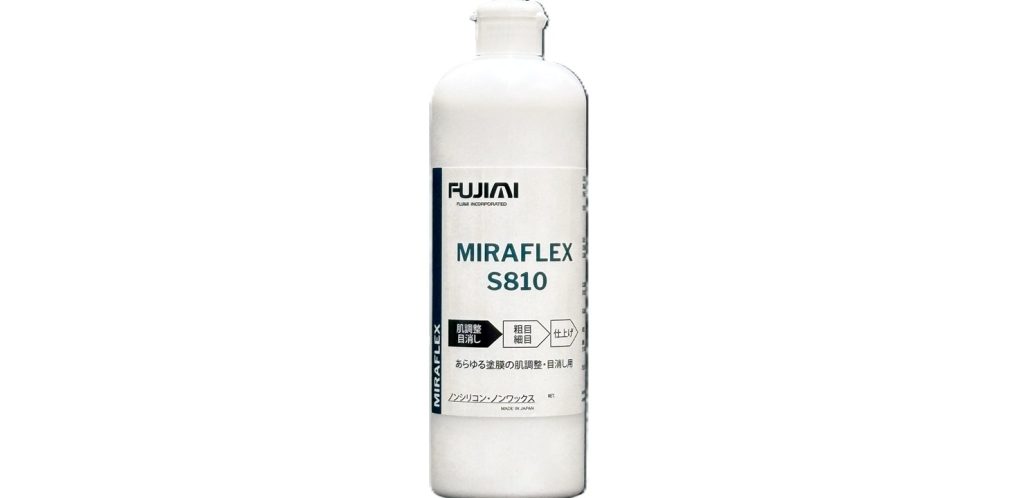 新製品の「MIRAFLEX S810」はペーパー目消し・肌調整用。ペーパー目消し及び肌調整の時間を大幅に短縮し、研磨時の粉の飛散を抑えた。また、深い傷が入りづらいためオーロラマークの発生を抑制し、後工程の負荷が軽減する。容量は470mℓ、3,7ℓの2種類。