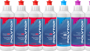 半導体シリコンウェハ鏡面仕上げ用研磨材で世界のトップシェアを誇るフジミインコーポレーテッドの独自技術を用いて開発したコンパウンド「MIRAFLEX」シリーズ。最大の特徴は、研磨時間の大幅短縮とクリヤー塗膜の膜減り低減。半導体研磨で長年培った砥粒技術を駆使して開発した小さくて均一な独自形状の研磨粒子により、経年車などのクリヤー層であっても必要以上に塗膜を削り過ぎず、短時間での研磨と良好な仕上がりを両立する。また乾燥を抑え、拭き取りやすい液成分により発塵と油分残留を低減する。