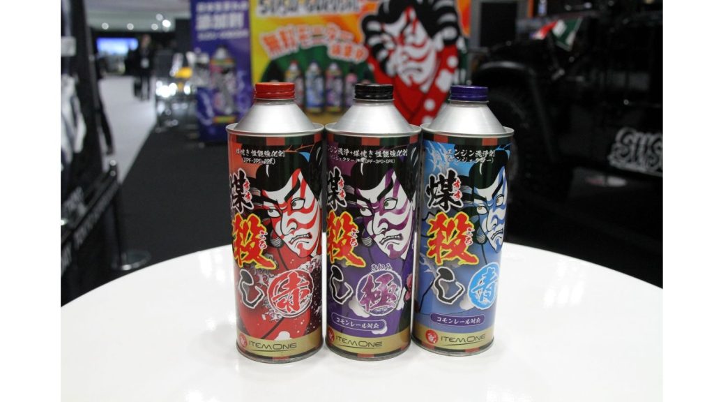 その問題に同社は燃料添加剤「煤殺し」シリーズそれぞれの特性で解決を提案。大型車向けの「煤殺し 赤」は煤の燃焼を促す酸化セリウムを高濃度で配合して、DPFが詰まりにくい環境を作る。そしてエンジンのトルク・パワーを回復させる大型車向け洗浄剤「煤殺し 青」はインジェクターの燃料噴射の正常化を促し、燃料室内の汚れを除去。そしてこの2製品の特性を併せ持つ「煤殺し 紫」は大型車から乗用車まで広く対応している。