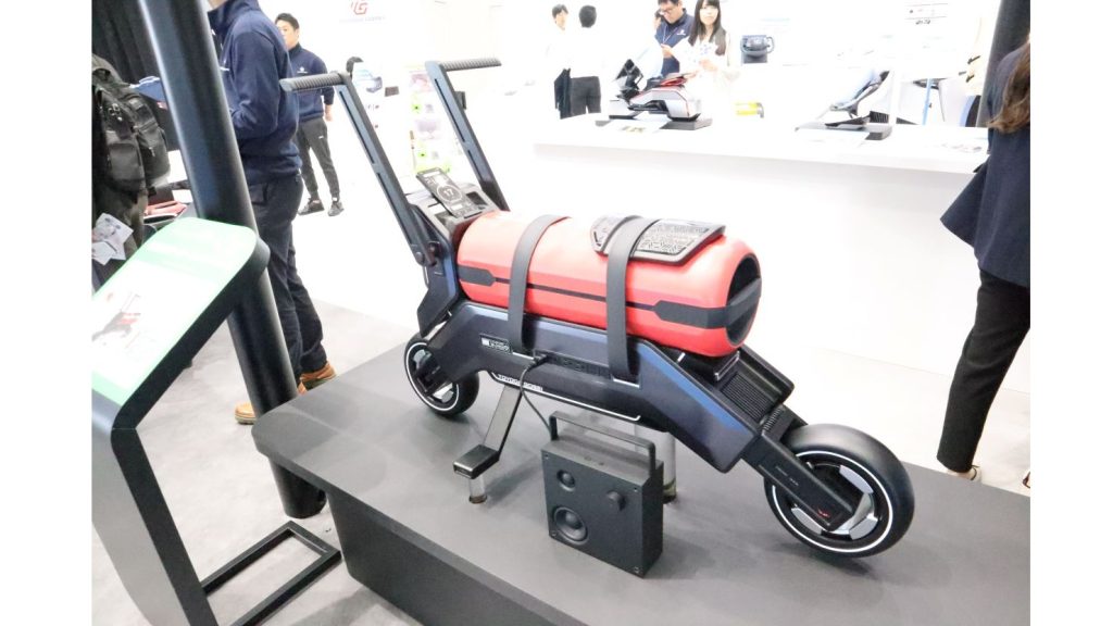 同じく水素カートリッジの応用事例として、水素スクーターのコンセプトモデルも披露(写真)。座席の直下にカートリッジを搭載するという大胆なデザインながら、強度・安全性も問題はない。